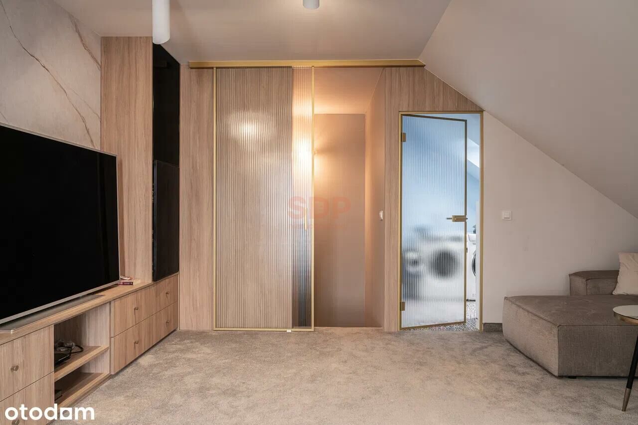 - open space z wygodnym narożnikiem z pojemnymi szafami i kinem domowym