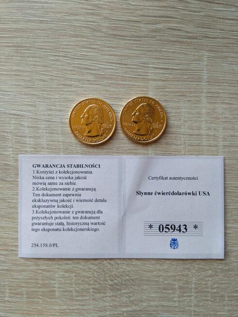 Słynne dwie ćwierćdolarówki amerykańskie Delaware & Pennsylvania. Repliki amerykańskich złotych monet ...